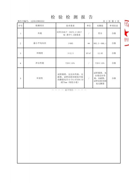 备注:1、以上产品标准长度6米或9米,也可根据客户要求定制长度。2 、管道连接方式为BF增强型闭水套件连接和不锈钢卡箍式连接。3、管道 执行标准:GB/T 19472.2-2017埋地用聚乙烯(PE)结构壁管道系统第2部 分:聚乙烯缠绕结构壁管材。 | |||||